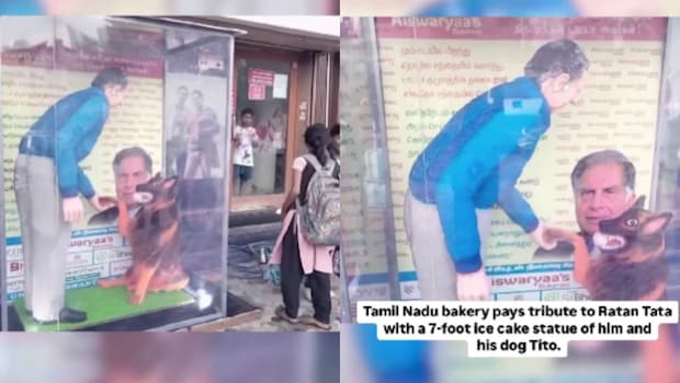The sculpture features Ratan Tata playing with his German Shepherd dog, Tito. Read More...